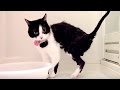 Tuxedo cat love bath.